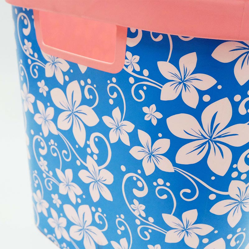 Lors d'une utilisation quotidienne, le motif de l'étiquette ne se décolle pas et ne se décolore pas, même en cas d'essuyage et de nettoyage répétés, ou de rayures et de chocs mineurs, prolongeant ainsi efficacement la durée de vie de l'apparence de l'étiquette du produit. Les étiquettes YZY utilisent un film BOPP de haute qualité, à la fois respectueux de l'environnement et stable. L'étiquette au design unique du client, avec son fond bleu rafraîchissant et son motif floral blanc complété par des lignes roses, améliore non seulement l'attrait décoratif de la boîte de rangement, mais complète également une variété de styles de décoration intérieure. De l'artisanat à la valeur pratique, l'étiquette moulée par injection pour boîte de rangement YZY, grâce à la technologie d'étiquetage dans le moule, réalise une double avancée en matière de durabilité et d'esthétique, offrant aux clients et aux consommateurs des produits de stockage domestique de meilleure qualité.